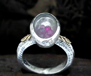 Semi Precious stones captured under crystal quartz. 14 carat gold & sterling silver.