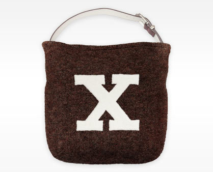 Handcrafted in Connecticut, in a beefy wool. With your choice of woolen numbers or letters. Like a letter jacket hiding out as a tote bag.