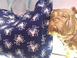 4 out of 5 gold Bulldogs agree. Octopus print waxed canvas bags are the beach bag to be seen with.