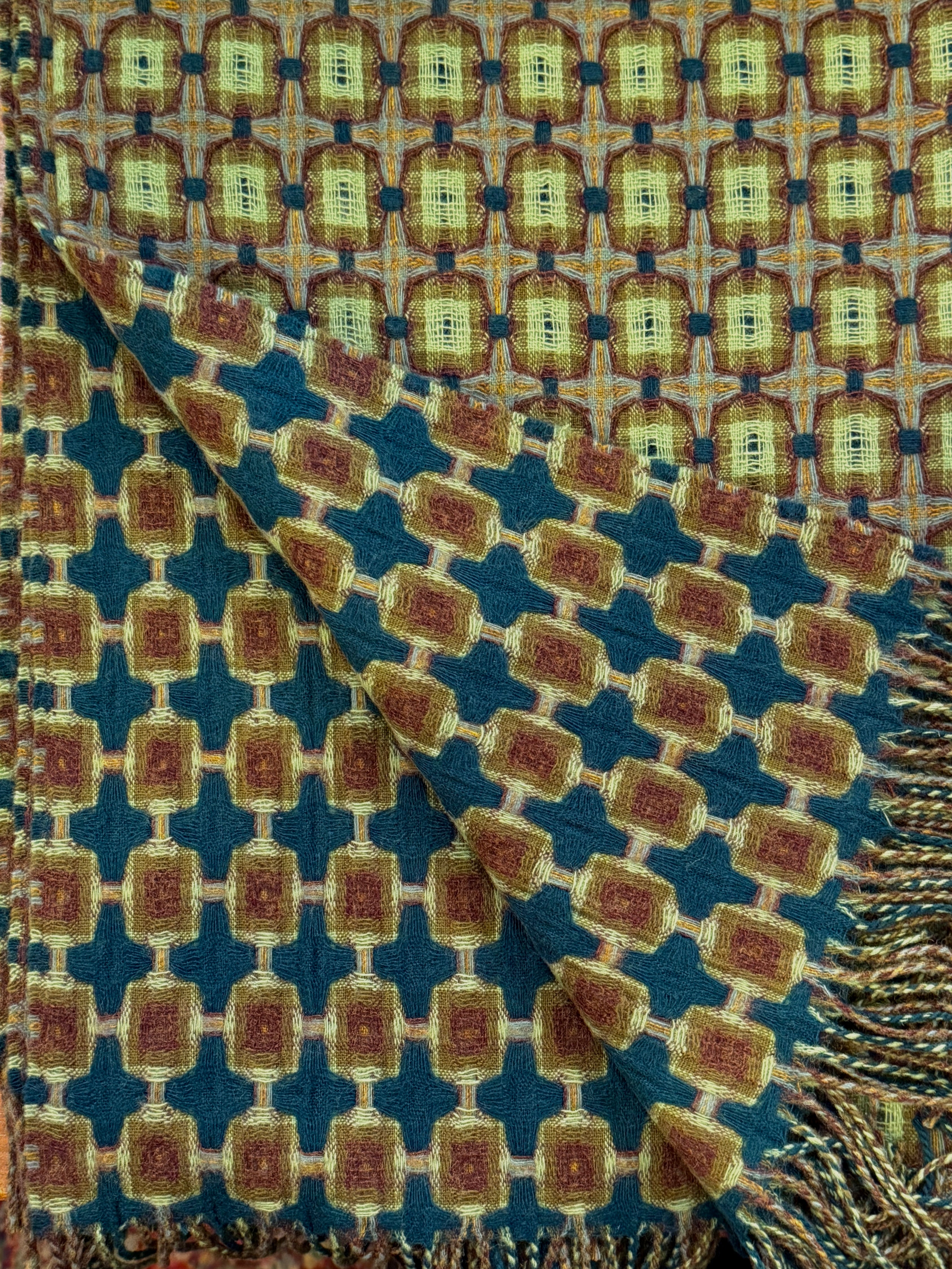 Extraordinary Scottish loomed blankets. Woven in the "basket weave' pattern, that highlights different colors on each side. These are truly heirloom quality blankets that will be enjoyed for generations. 60 by 74 inches. Designed and made in Scotland.