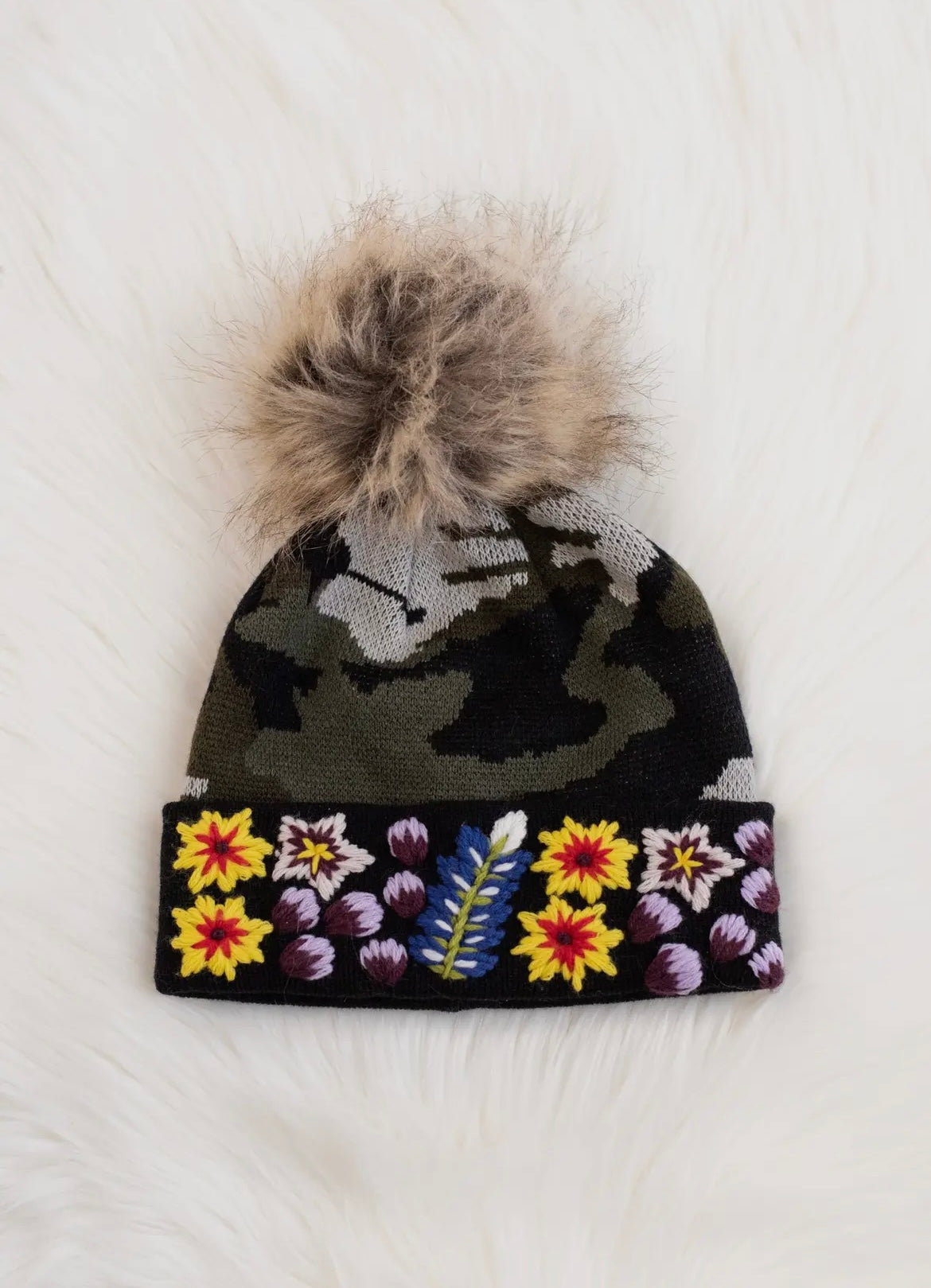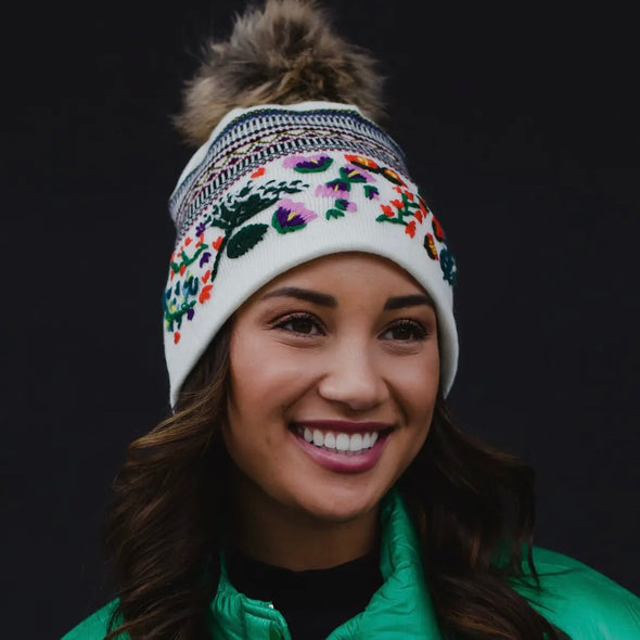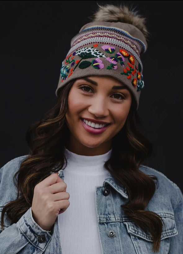 Floral embroidered knit hats