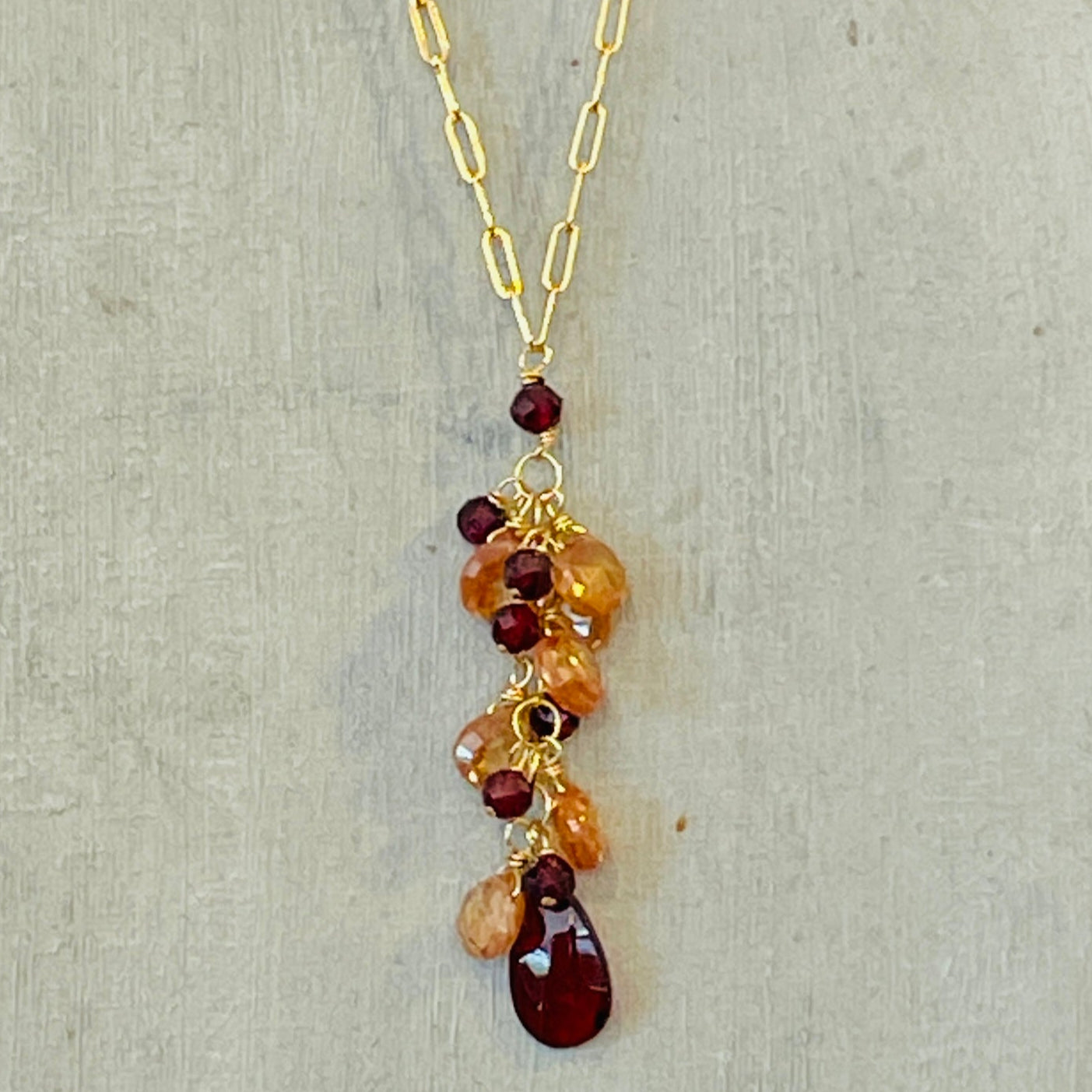 Shine on with our Semi Precious Cluster Stone Necklace. The light-filled stones dazzle on the delicate gold-fill chain, adding a touch of elegance to any outfit. Perfect for any occasion, this necklace is sure to turn heads whenever you wear it. 17-19 inch adjustable chain. Designed and made in Los Angeles California.